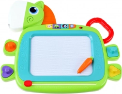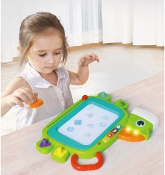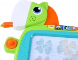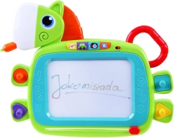 Tato barevná magická tabule má spoustu úžasných funkcí, které podporují kreativitu a rozvoj jemné motoriky dětí. Můžete na ní kreslit, psát stylusem nebo vytvářet vzory pomocí razítek. Po dokončení kresby lze obrázek snadno smazat pomocí posuvného mazacího mechanismu. Interaktivní hra je doprovázena světelnými a zvukovými efekty: