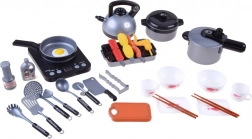Tato přenosná kuchyňská sada je ideální pro každého malého kuchaře. Nabízí kompletní vybavení včetně čajníku, plotýnky, tlakové pánve a mnoha dalších doplňků potřebných ke vaření a grilování.