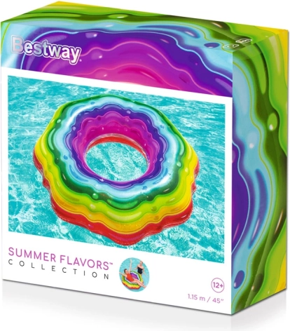 Vychutnejte si nekonečné vodní radovánky s velkým nafukovacím kruhem od firmy Bestway. Tento kruh o průměru 115 cm je vyroben z odolného PVC, který je odolný vůči UV záření a mořské vodě. Tvar kruhu zajišťuje pohodlné a bezstarostné lenošení u vody.
