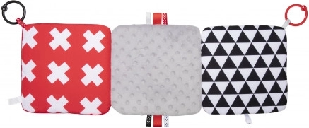Hračku snadno zavěsíte na kočárek či postýlku, složíte do stabilní pyramidy pro hru na bříšku nebo rozložíte jako látkovou knížku pro objevování.