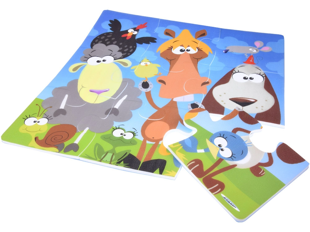 Pěnové puzzle se zvířátky spojuje hru a učení v jednom. Díky barevným ilustracím děti poznávají zvířátka, barvy i tvary, zatímco si procvičují skládání. Měkčený povrch je příjemný na dotek a zajišťuje komfort při sezení i lezení.