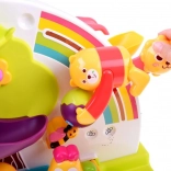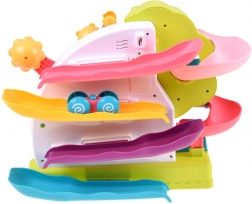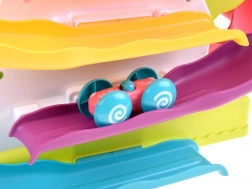 Interaktivní dráha 2v1 zaujme živými barvami, roztomilými postavičkami a chytlavými efekty. V režimu kuliček se po zatažení za páčku s hlavičkou lvíčka kulička přemístí na nejvyšší úroveň a rozjede se po čtyřech patrech dolů, za doprovodu veselé hudby s možností nastavení hlasitosti nebo úplného vypnutí. V režimu autíčka stačí pustit vůz z vrchu a sledovat, jak sviští až do cíle.