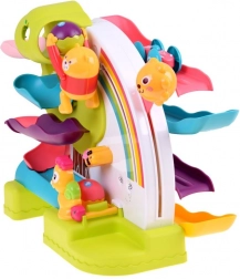 Dráha je vyrobena z kvalitního plastu v příjemných barvách a je ideální pro rozvoj jemné motoriky, postřehu a koordinace oko–ruka. Díky oboustrannému provedení prodlužuje hru a udržuje pozornost dětí po dlouhou dobu.
