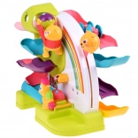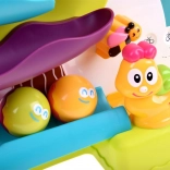 Sledování pohybu a spouštění kuliček podporuje koordinaci oko–ruka, soustředění a pochopení příčiny a následku.