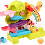 Veselá melodie doprovází jízdu kuliček. Hlasitost lze upravit nebo zvuk zcela vypnout – ideální pro hraní doma i na cestách.
