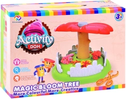 Sada obsahuje vše potřebné pro vytvoření vlastního stromu s podstavcem, čtyři barevné kelímky s plastelínou a nástavce pro vymačkávání tvarů.