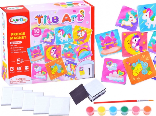 Sada obsahuje všechny potřebné komponenty pro tvorbu desetí magnetů - od dlaždic po barvy a štětec. Děti se tak mohou okamžitě ponořit do tvůrčí činnosti.