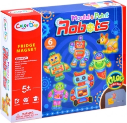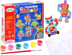Sada umožňuje dětem tvořit a vybarvovat robotí magnety dle jejich fantazie.