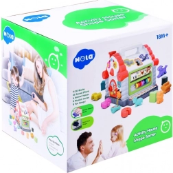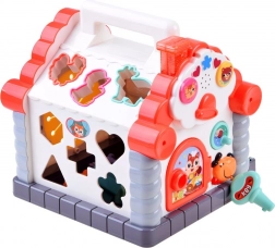 Barevný interaktivní domeček pro děti od 18 měsíců spojuje třídění tvarů, reálné zvuky zvířátek, veselé melodie, mini pianinko, počítadlo a další aktivity. Rozvíjí jemnou motoriku, logické myšlení, poznávání tvarů a barev i první hudební vnímání.