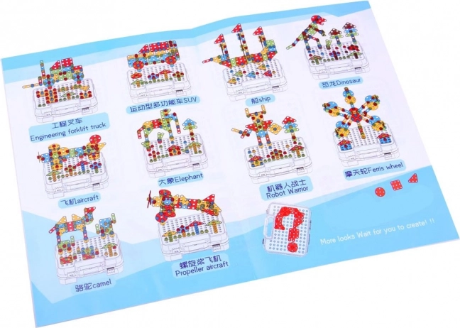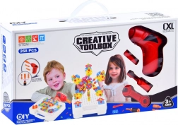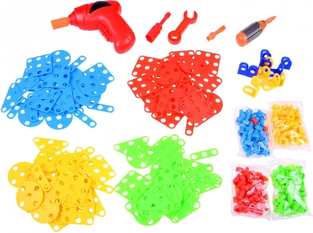 Součástí je dětská elektrická vrtačka na 2× AA baterie, šroubovák a klíč, které umožní skutečné šroubování a rozšroubování konstrukcí. Díky tomu děti trénují jemnou motoriku, koordinaci oko–ruka i trpělivost, a zároveň rozvíjejí kreativitu a technické myšlení.