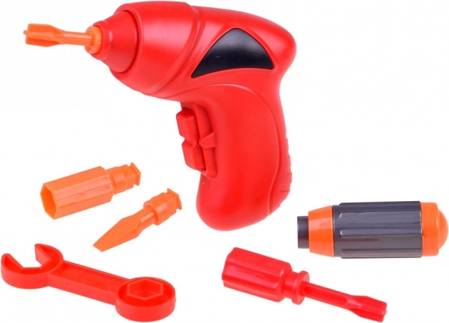 Elektrická vrtačka na 2× AA baterie, šroubovák a klíč umožní dětem reálně montovat i demontovat modely – trénují jemnou motoriku a samostatnost.