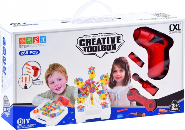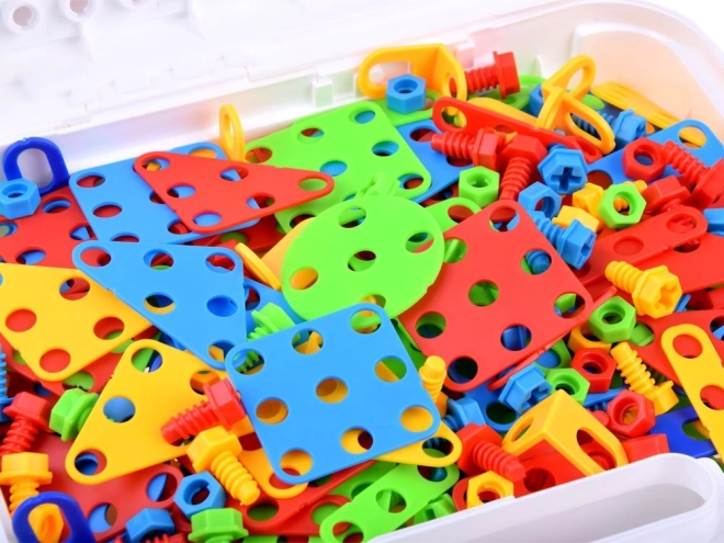 Podpořte dětskou kreativitu a jemnou motoriku s tímto velkým konstrukčním setem v praktickém kufříku. Obsahuje 268 dílů, barevné tvary, šroubky a dětskou vrtačku na baterie pro skutečné šroubování. Skvělá volba pro učení hrou, rozvoj logiky a prostorového myšlení.