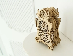 Kouzelné hodiny od Wooden City jsou nejen mechanickým modelem, ale i uměleckým dílem. Tento 3D puzzle vám umožňuje nejen skládání, ale i sledování fascinujícího pohybu hodinového mechanismu, který funguje díky kyvadlu a ozubeným kolům. Díky dvěma ciferníkům - jednomu pro hodiny a druhému pro minuty - můžete sledovat plynutí času v kouzelné atmosféře.
