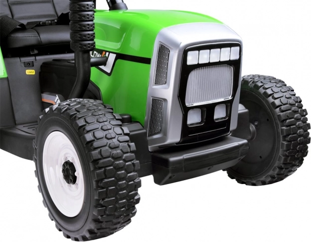 Dětský elektrický traktor s přívěsem nabídne hodiny zábavy na zahradě i dvorku. Má plynulý rozjezd, světelné a zvukové efekty, pohodlné sedadlo z eko kůže, hudební panel a lze jej řídit i dálkovým ovladačem pro maximální bezpečí.