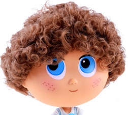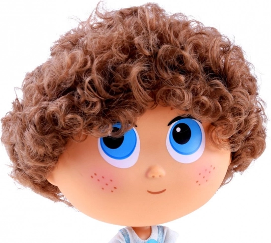 Velké modré oči, jemné pihy a kudrnaté hnědé vlasy dávají panence výjimečný charakter a přátelský úsměv.