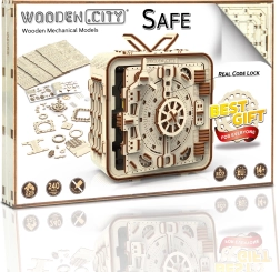 Vychutnejte si skládání funkčního trezoru bez potřeby lepidla či nářadí! Wooden City modely jsou vyrobeny z ekologických dřevěných materiálů a poskytují dlouhé hodiny zábavy. Poznejte převody, gumičkové motory, ozubená kolečka a další součástky z blízkosti.