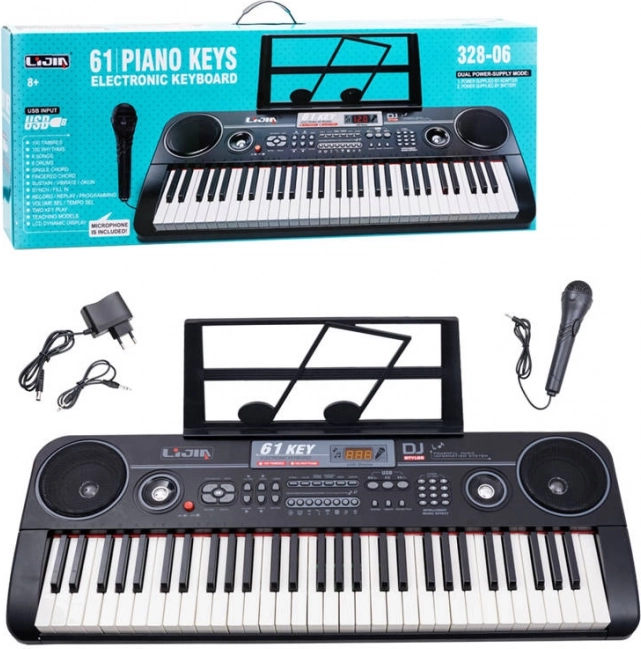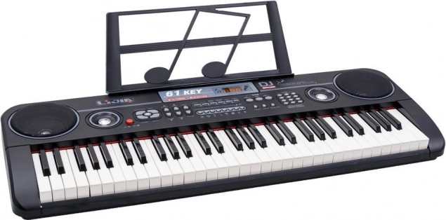 Multifunkční klávesy s 61 klávesami, 100 zvuky, 100 rytmy a 8 padů bicích. Nabízí USB vstup pro MP3 podklady, nahrávání/ přehrávání, LED displej, stereo reproduktory a připojení mikrofonu. Ideální pro začátečníky i domácí hraní.