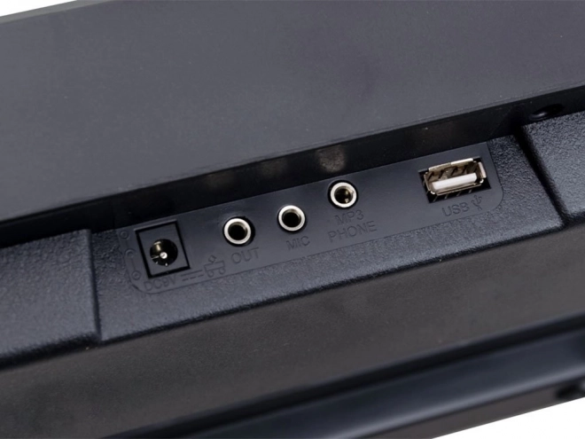 Dva vestavěné stereo reproduktory zajišťují plný zvuk bez nutnosti externí aparatury. Nechybí vstup pro mikrofon (mini jack), linkové vstupy/výstupy pro telefon, přehrávač či sluchátka a stojánek na noty. Napájení je možné z adaptéru (v balení) nebo z baterií, takže můžete hrát kdekoli.