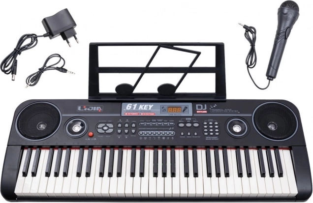 - Stojánek na noty, mikrofon, napájecí adaptér/ nabíječka, kabel mini jack