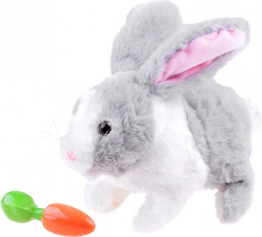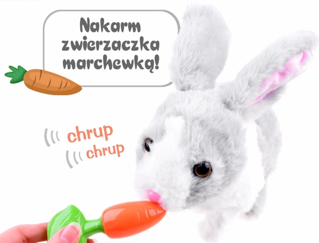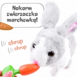 Součástí balení je mrkev. Když ji přiložíte k tlamičce, králíček vydává realistické zvuky chroupání – ideální pro hraní na krmení.