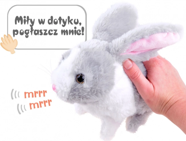 Tento roztomilý plyšový králíček je skvělou volbou pro děti, které touží po zvířátku. Kombinuje hebký plyš s realistickými interaktivními funkcemi, takže působí jako skutečný mazlíček – kicá dopředu, vrtí oušky a nosem, reaguje na dotek a při krmení vydává zvuky chroupání.