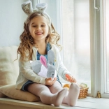 Díky jednoduchému ovládání si s ním poradí i nejmenší. Stačí posunout přepínač a jemně stisknout bok králíčka – hned ožije. Součástí je plastová mrkvička, se kterou lze králíčka „krmit“, což podporuje rolové hry, rozvoj fantazie a učení zodpovědnosti.