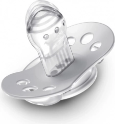 Ergonomicky tvarovaný štítek umožňuje volné dýchání nosem a ventilační otvory zajišťují cirkulaci vzduchu, která snižuje riziko podráždění. Kvalitní silikon bez chuti a zápachu je odolný a bezpečný, samozřejmostí je bez BPA. Praktický úchyt usnadňuje podávání i uchopení.