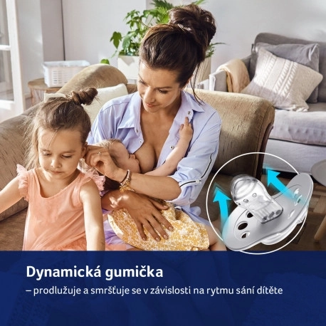 Neperforovaná vícevrstvá konstrukce se přirozeně stlačuje a roztahuje při sání, napodobuje bradavku a podporuje zdravé orální návyky.