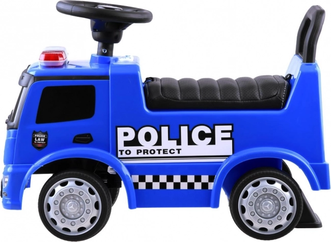 Jezdítko Mercedes Policie je skvělou volbou pro malé děti. Je vybaveno zvukovým klaksonem a svítícím majáčkem, které lze aktivovat stisknutím tlačítek. Pohodlné sedátko s opěrkou zajišťuje bezpečnou a komfortní jízdu, a díky speciální blokádě se vozidlo nepřevrátí dozadu.