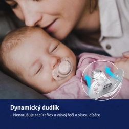 Dynamický dudlík LOVI, vytvořený ve spolupráci s neurologopedy, zajišťuje přirozený a zdravý vývoj dětské ústní dutiny. Výrazně se rozkládá a smršťuje dle rytmu sání.