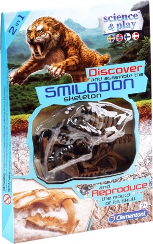 Sada obsahuje vše potřebné k postavení kostry a vytvoření sádrového modelu hlavy šavlozubého tygra. Objevte jedno z nejsilnějších zvířat, které kdy žilo na Zemi tisíce let zpět! Kostěné díly lze spojovat, což umožňuje postavit kostru, kterou můžete umístit na podstavec jako exponát na stůl nebo polici.