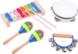 Dřevěný hudební set je skvělým nástrojem pro dětské domácí koncerty či kreativní koutek. Díky svým jásavým barvám a kvalitnímu zpracování pomůže dětem rozvinout jejich hudební cítění.
