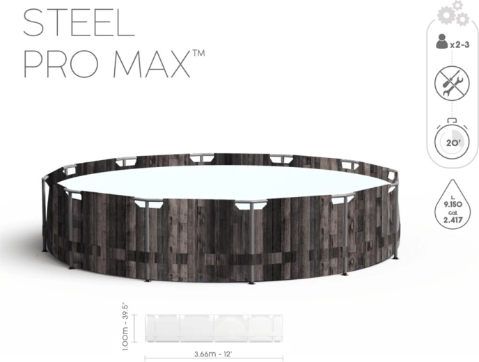 Rodinný kruhový bazén BESTWAY Steel Pro MAX s průměrem 366 cm a výškou 100 cm nabídne osvěžení i zábavu pro děti i dospělé. Realistický vzor starého dřeva skvěle ladí se zahradou a dodává styl každému venkovnímu prostoru. Pevný ocelový rám s FrameLink System zvyšuje stabilitu a chrání spoje proti korozi. Odolná vložka z materiálu DuraPlus (polyesterové jádro + dvě silné vrstvy PVC) garantuje dlouhou trvanlivost a spolehlivost.