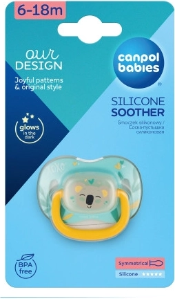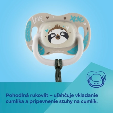 Stylový dudlík Canpol babies Exotic Animals s motivem koaly pro děti 6–18 měsíců přináší klid a pohodlí. Má symetrickou silikonovou savičku bez chuti a zápachu, odvětrávaný štítek šetrný k pokožce, praktický úchyt pro snadné připnutí a svítící střed pro snadné hledání ve tmě. Bez BPA, pevný a odolný proti deformaci.