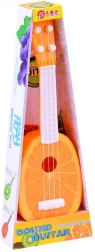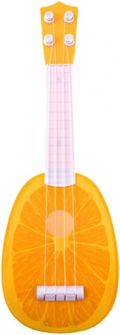 Roztomilé dětské ukulele s motivem pomeranče potěší malé hudebníky. Je lehké, odolné a díky čtyřem strunám a nastavitelnému krku podporuje první hudební krůčky. Zábavný design, nízká hmotnost a kompaktní velikost 37 cm z něj dělají skvělou volbu na hraní i jako dárek.
