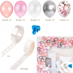 Vytvořte si snadno působivou výzdobu s balónkovou girlandou v bílo‑růžové kombinaci. Ideální jako fotokoutek, pro narozeniny, svatby či baby shower. Součástí je perforovaná páska pro jednoduché sestavení a možnost nafukování vzduchem nebo heliem.