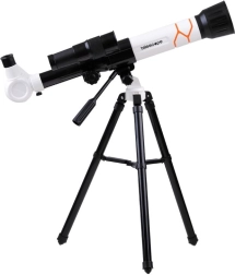 Dětský teleskop je skvělý start do světa astronomie – podpoří zvědavost a umožní komfortní pozorování Měsíce, hvězd a také objektů na Zemi. Lunetový systém se šikmým zrcátkem zlepšuje kontrast, redukuje optické vady a poskytuje stabilní, přímý obraz. Díky kompaktní délce a lehké konstrukci jej snadno umístíte na stůl a během chvilky připravíte k pozorování.