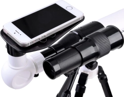 Součástí balení jsou tři okuláry s přiblížením 20x / 30x / 40x, držák telefonu s přísavkami pro zobrazení obrazu na displeji a stabilní stativ. Z vnější strany je tubus chráněn ochranným krytem, který usnadňuje údržbu a udržuje optiku v čistotě.