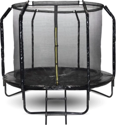 Skákací plocha z polypropylenu JUMPING MAT je prošívaná 8 pevnostními švy, což zvyšuje odolnost proti namáhání. Profilované kovové sloupky jsou kryté měkkou ochrannou pěnou a vchod do trampolíny má dvojité jištění (zip + přezka). Pro snadný nástup poslouží dvoustupňový žebřík.