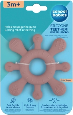 Různorodé textury a výstupky po celém obvodu zklidňují podrážděné dásně a pomáhají při prořezávání prvních zoubků.