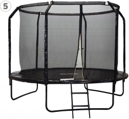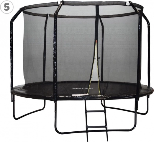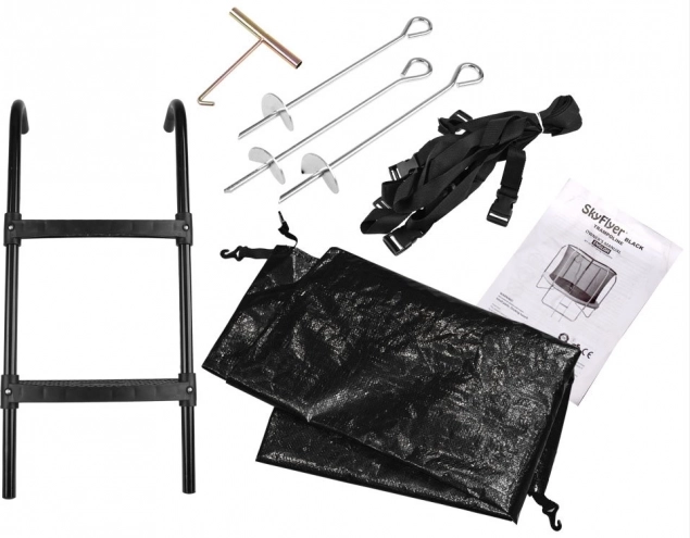 V balení najdete vše potřebné: rám s černě lakovanými trubicemi, žebřík pro pohodlný vstup, kryt pružin (pad), silné oxidované pružiny, voděodolný potah a praktické příslušenství včetně klíče na natahování pružin. Díky promyšlené konstrukci (šrouby z vnitřní strany) je vnější obvod hladký a bezpečný.