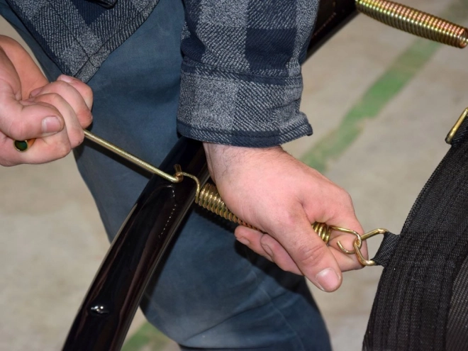 Skákací plocha z PP s 8násobným prošitím a oxidované pružiny zajišťují skvělý odraz, dlouhou životnost a vysokou nosnost až 150 kg.