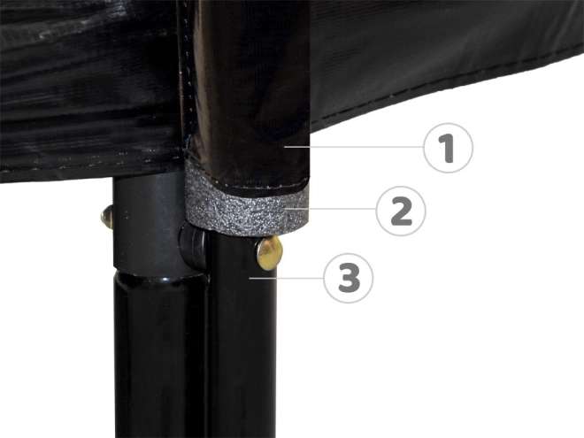 Vysoká textilní síť se zipem a přezkou brání vypadnutí, sloupky jsou potažené měkkou pěnou pro maximální bezpečí při skákání.
