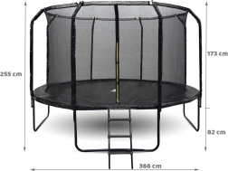 Rodinná zahradní trampolína SKYFLYER o průměru 366 cm přináší bezpečnou zábavu i kondiční trénink pro děti i dospělé. Díky vysoké bezpečnostní síti, pevné skákací ploše z PP, profilovaným sloupkům s měkkým polstrováním a stabilním U-nohám si užijete skákání bez starostí. Součástí je žebřík, kotvy s popruhy a plachta/poklop – vše pro maximální bezpečí a pohodlí.