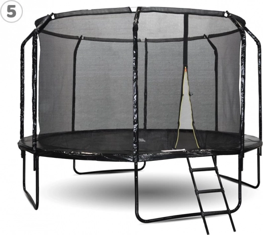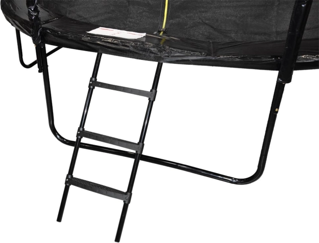 Masivní rám se silnými oxidovanými pružinami a U-nohami drží trampolínu pevně na místě, zatímco krycí límec bezpečně zakrývá pružiny. Praktický třístupňový žebřík usnadňuje nástup i dětem. V balení najdete také kotvy s popruhy, voděodolný kryt a montážní nářadí – vše pro snadnou instalaci a bezproblémový provoz.