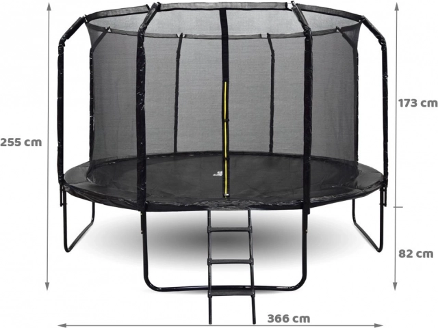 Udělejte ze své zahrady místo pro zábavu a zdravý pohyb. Trampolína SKYFLYER 366 cm kombinuje robustní konstrukci s důmyslnými bezpečnostními prvky: vnitřní ochranná síť s kroužkem pro napnutí, polstrované, profilované sloupky a double-secure vstup na zip a přezku. Skákací plocha z odolného Jumping Mat PP materiálu je vícenásobně prošitá (8 švů), což zajišťuje dlouhou životnost i při intenzivním používání.
