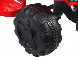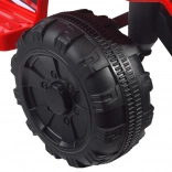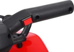 Jízdu spustíte stiskem červeného tlačítka na rukojeti – ideální pro malé dětské ruce a bezpečné rozjezdy bez složitého ovládání.