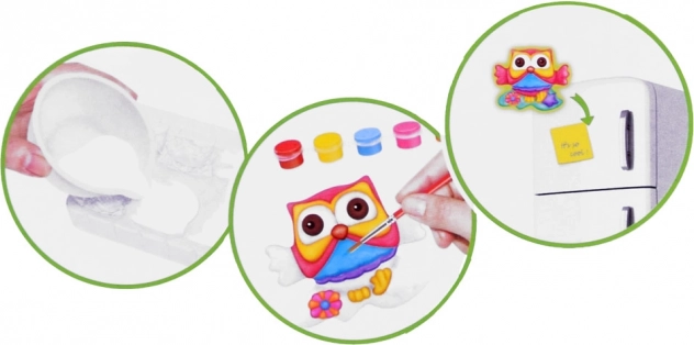 Smíchej, nalej do formy, nech zaschnout, vybarvi a připevni magnet – ideální aktivita pro rozvoj kreativity a trpělivosti.