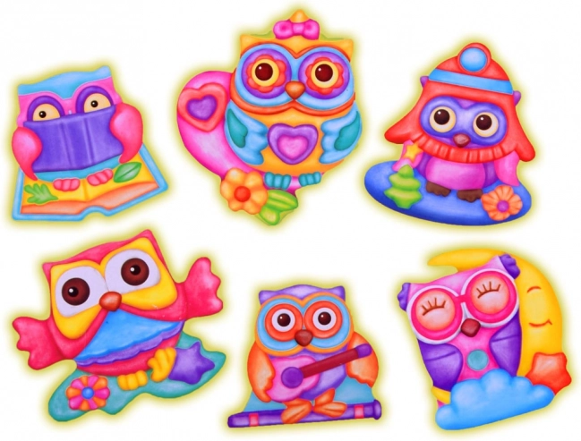 Vytvořte až 6 různých magnetek a ozdobte lednici nebo dětský koutek veselými sovičkami v hravých barvách.
