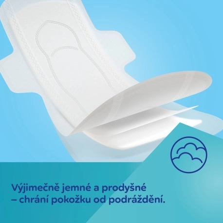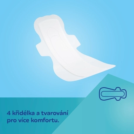 Prodloužené provedení a profilovaný tvar v kombinaci se čtyřmi křidélky a širokým lepicím proužkem zaručují jistotu během dne i v noci. Vložky jsou diskrétní, pohodlné a ideální pro období po návratu z porodnice.